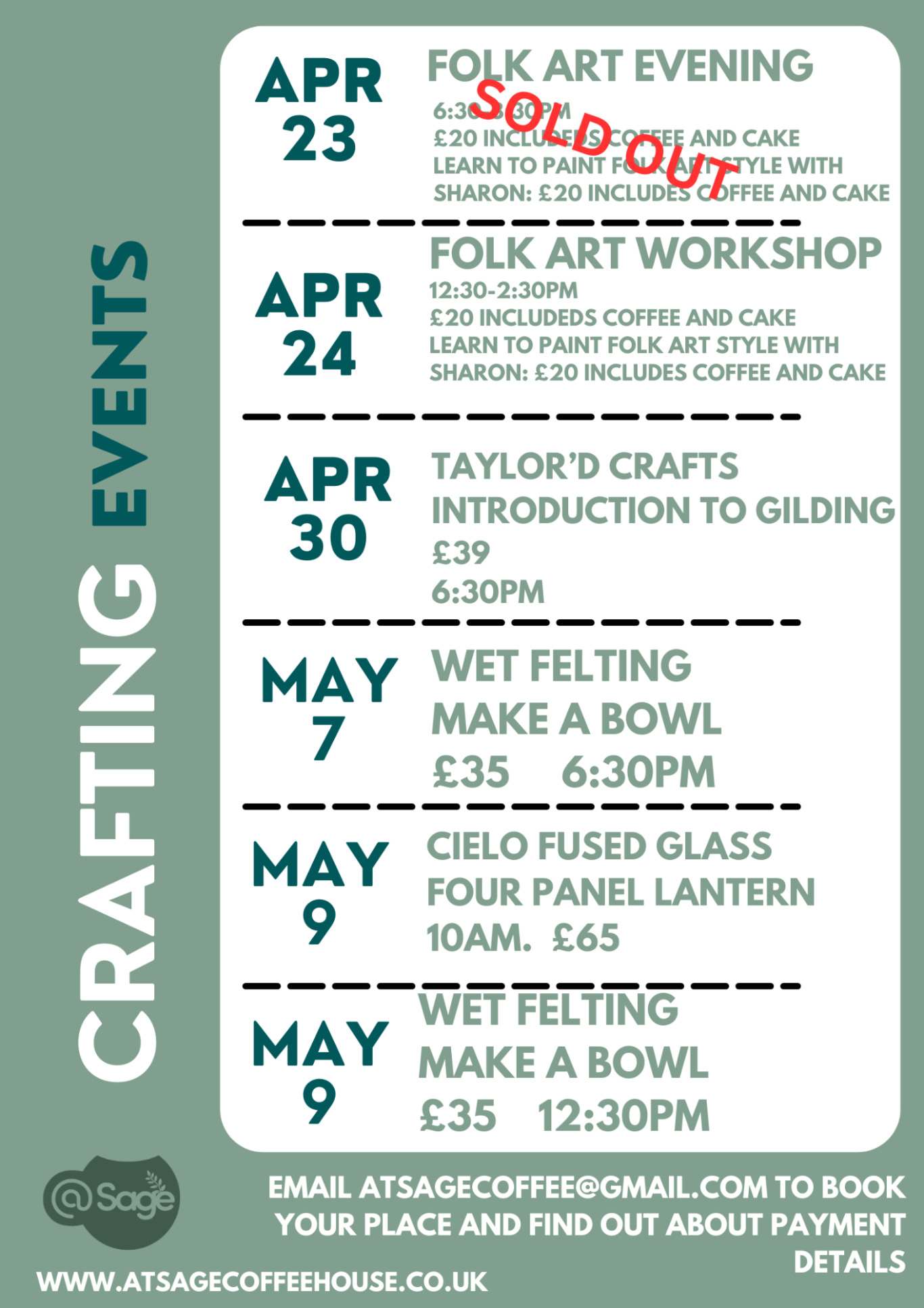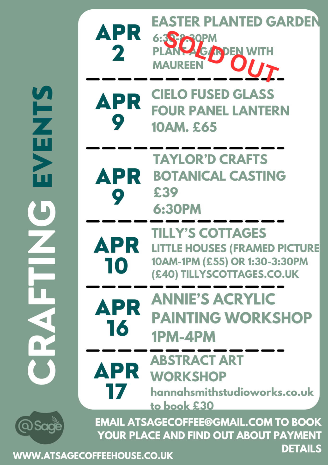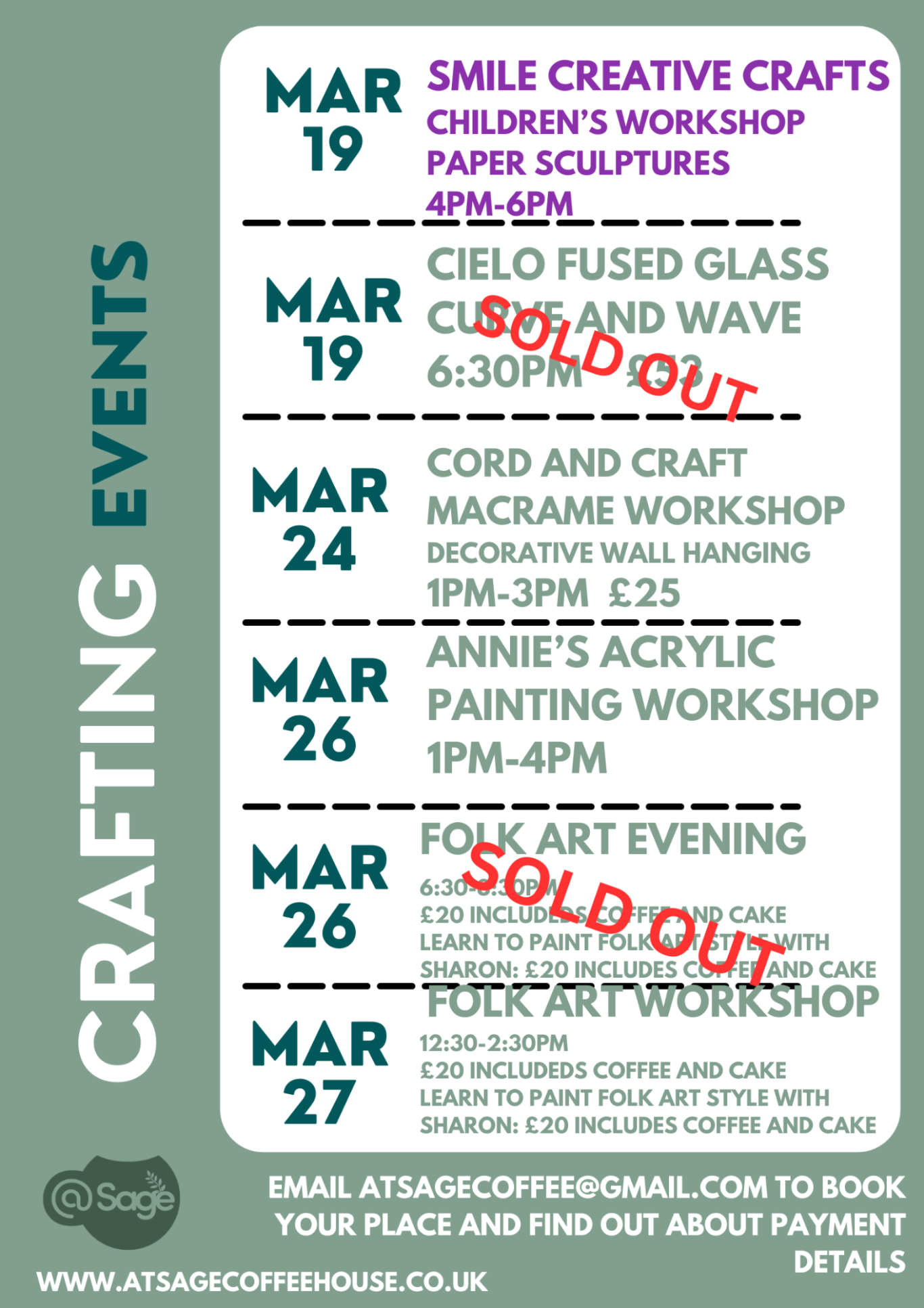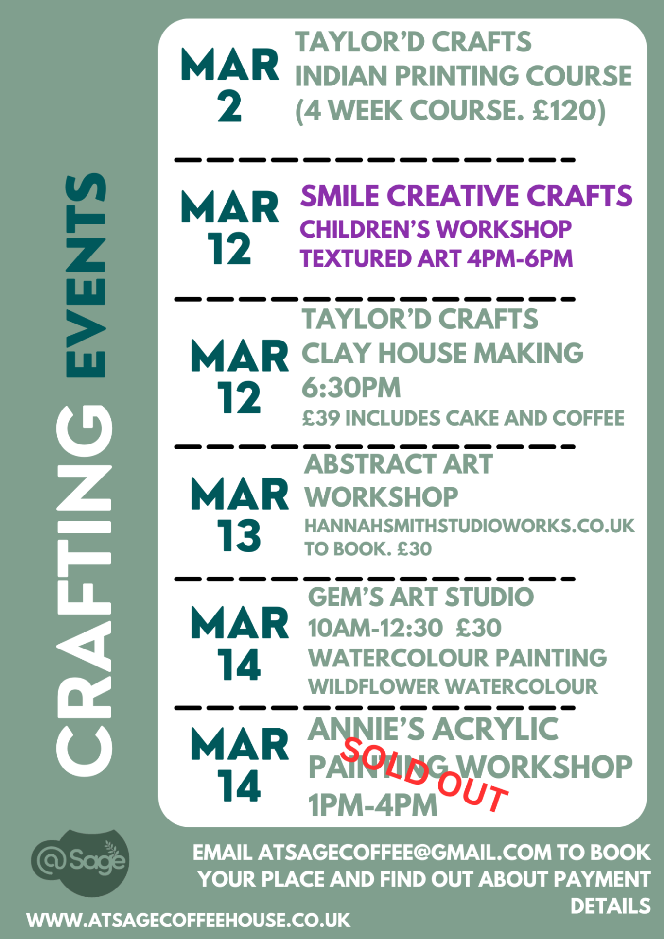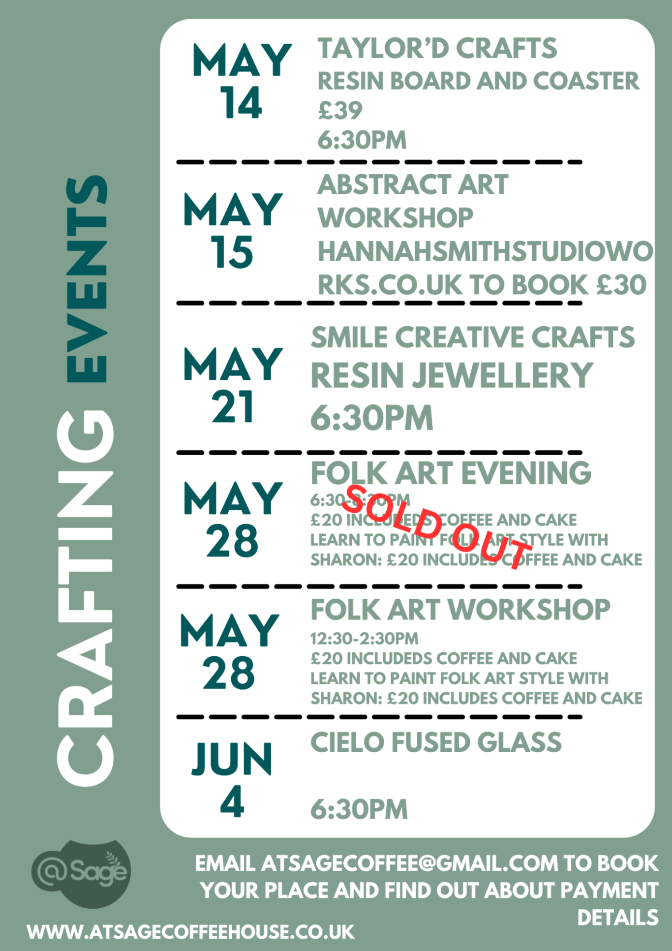 To book your event, please email us at: atsagecoffee@gmail.com
