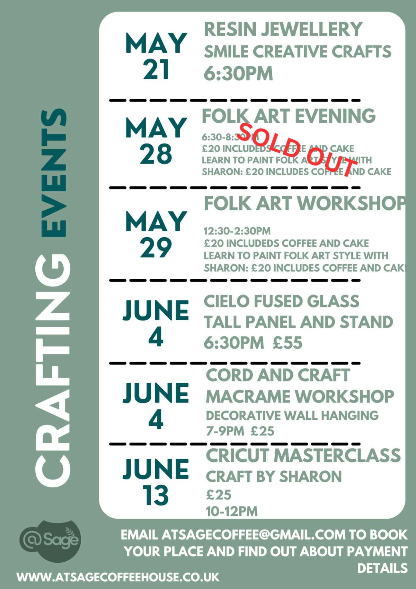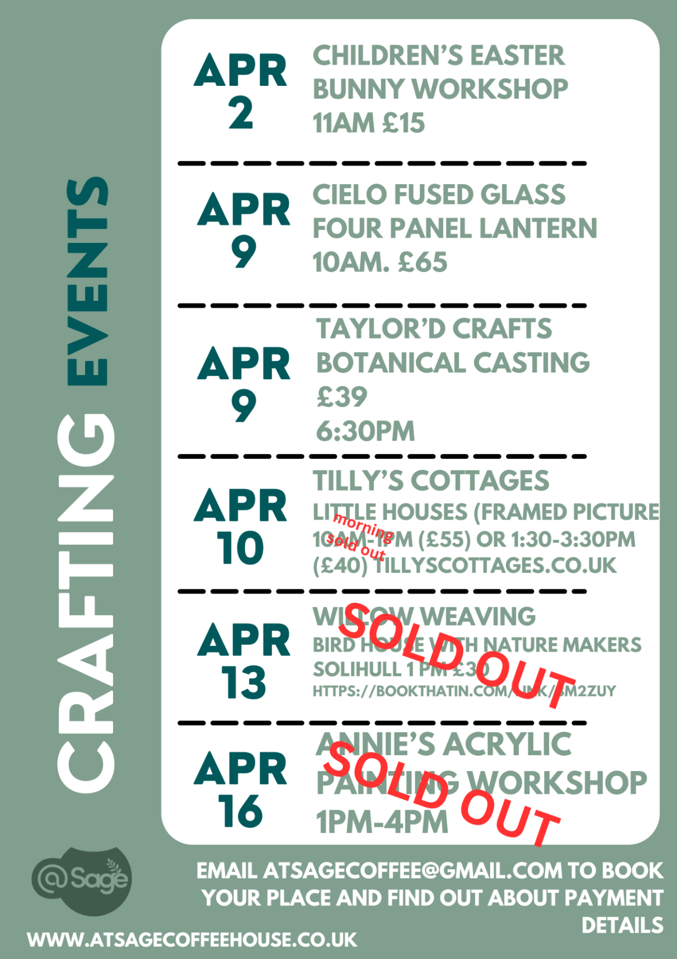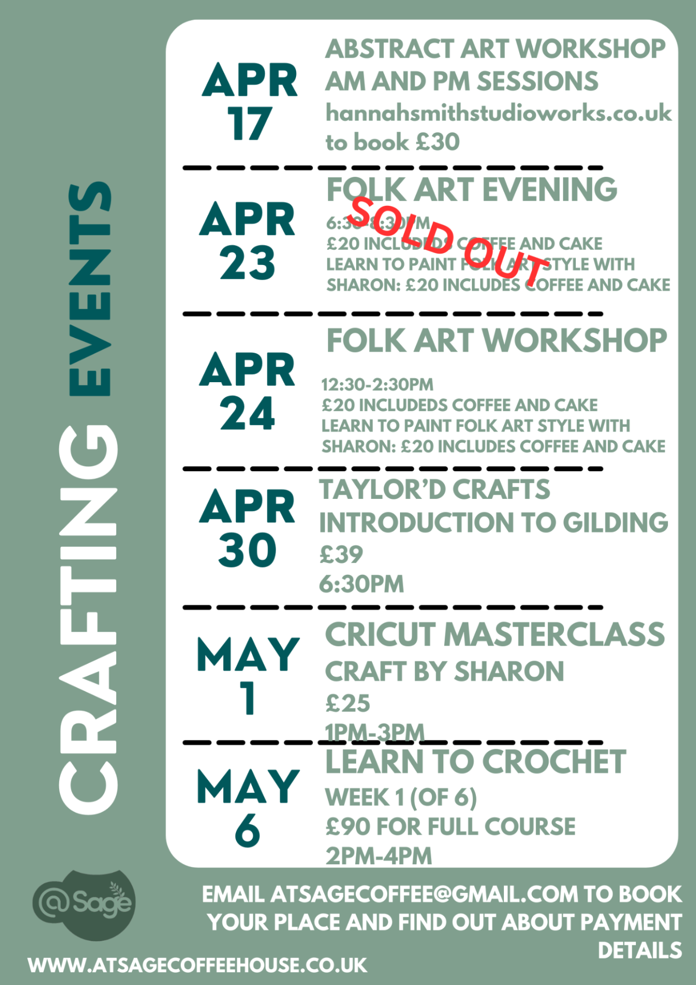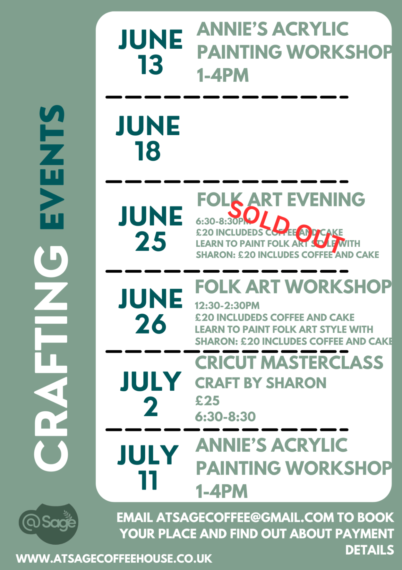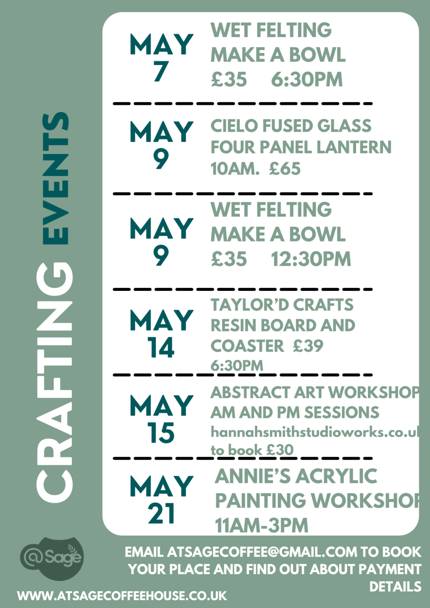 To book your event, please email us at: atsagecoffee@gmail.com